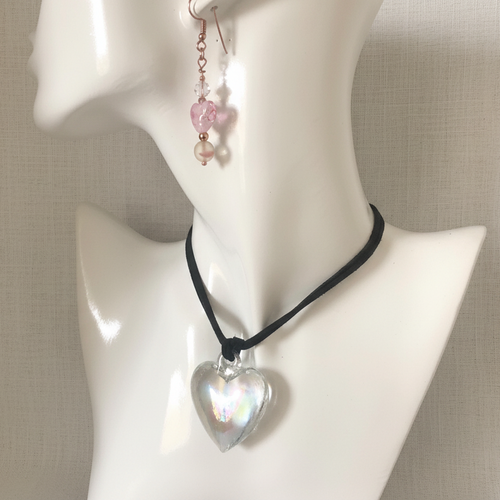 Blue Murano Glass Heart Pendant Necklace -